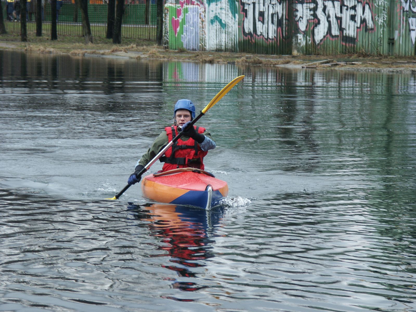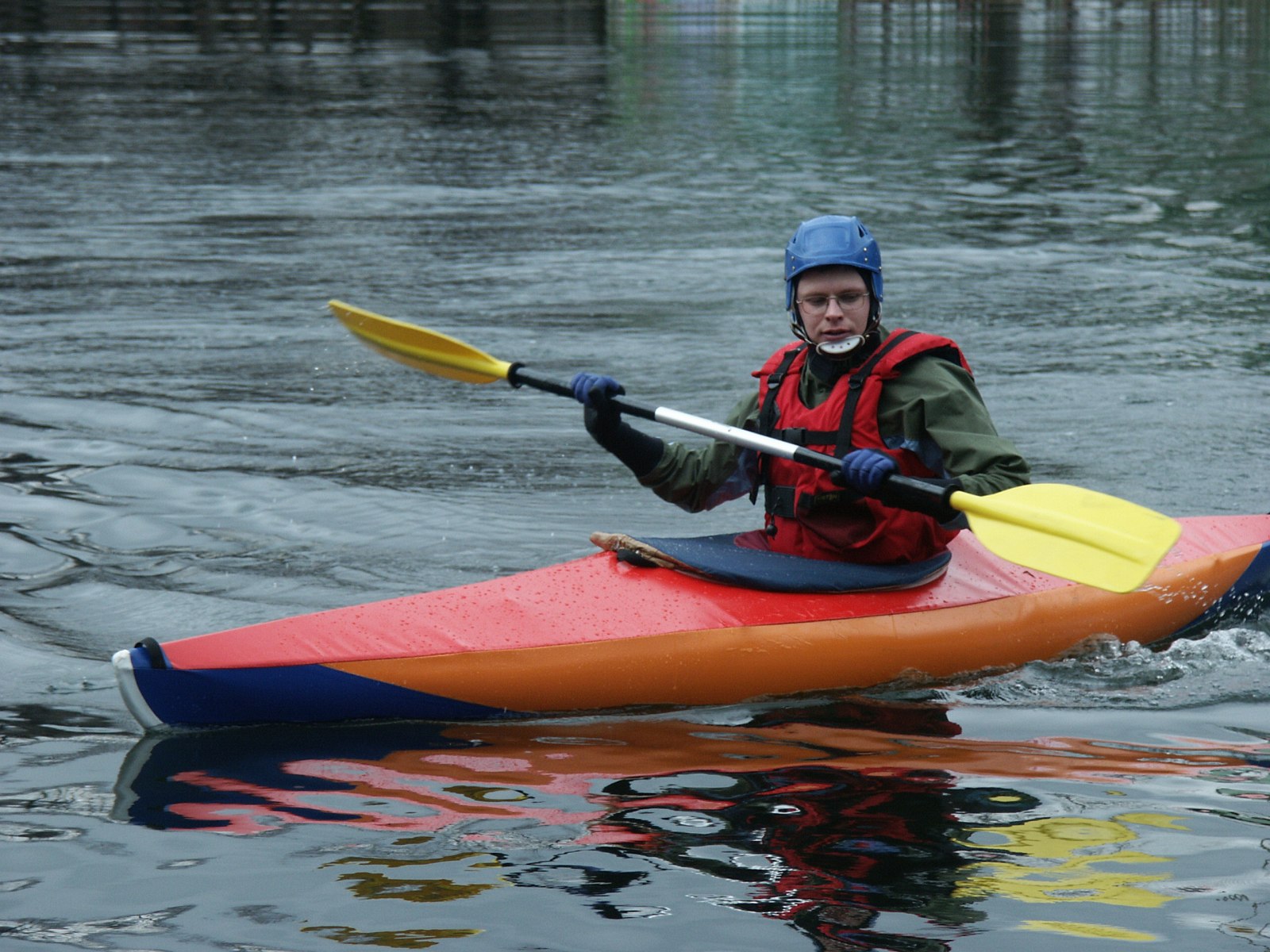 Каяк довольно неплохо едет вперед, проблем на озёрах я не испытывал. С каркасниками типа Тайменя не гонялся, а вот в паре с КНБ никаких проблем не было, скорости близки. Серьёзные пороги я на этой лодке не ходил. Типичные карельские пороги и шиверы проходятся легко и непринуждённо. Лодка довольно остойчива, оверкиль мне удалось совершить только один раз да и то, когда полез выпендриваться в порог. Курс держит очень хорошо, а вот вертится не очень, но оно и понятно - лодка килеватая, да и обводы скорее байдарочные, нежели каячные.